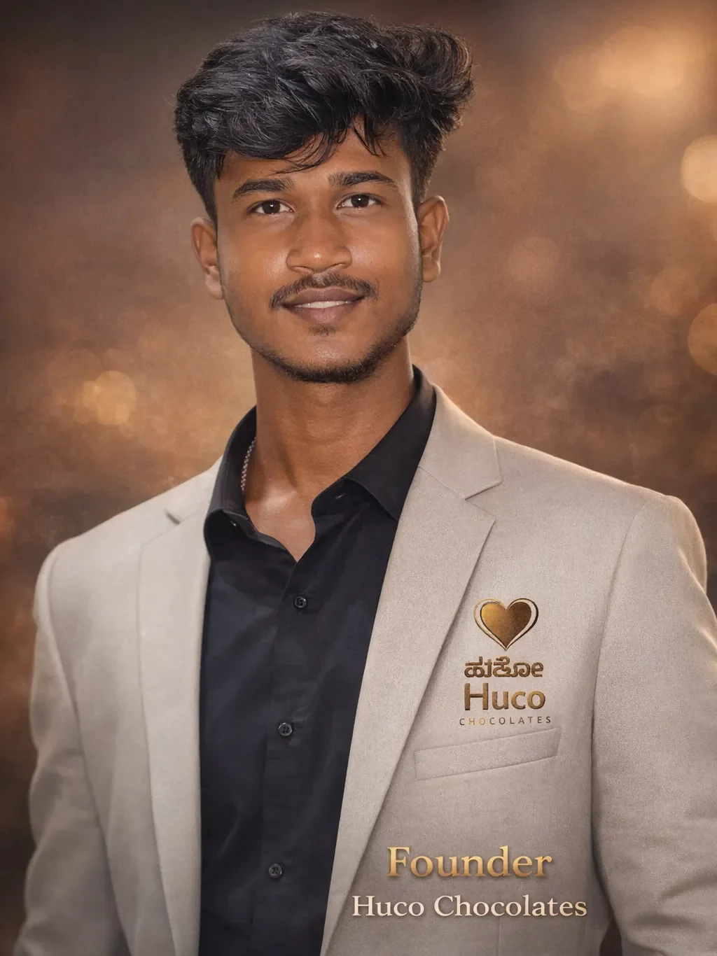 Venkatesh K, the Founder & Visionary of Huco Chocolates, is the creative mind and driving force behind one of India’s most loved handcrafted chocolate brands. His journey began with a simple yet powerful dream — to create authentic, natural, and premium-quality chocolates that reflect both Indian craftsmanship and international standards.