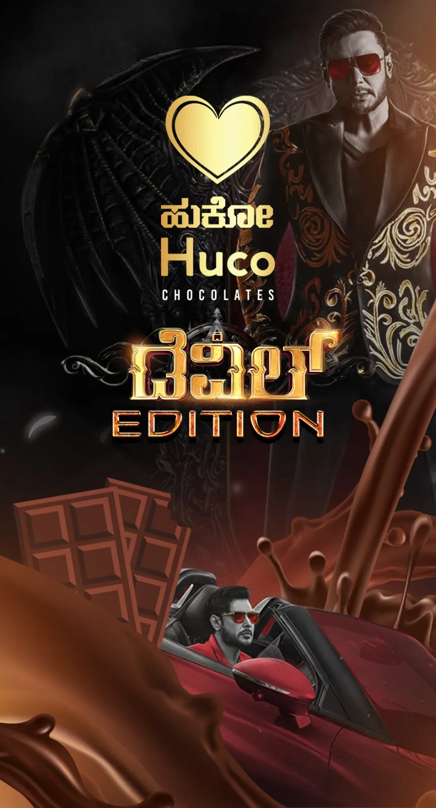 Kannada Chalana Chitra Ranga dalli atyanta edurigedeyiruva movie “DEVIL” ge namma Huco Chocolates inda special tribute!